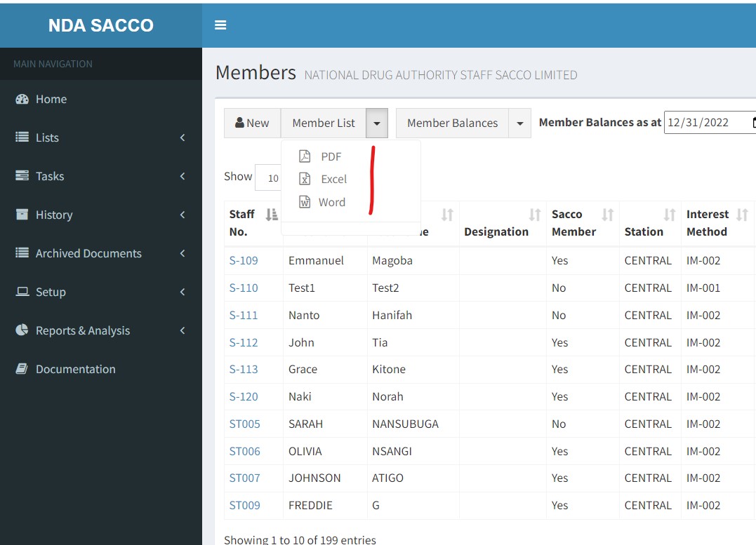 Any page can be exported to a Word, Excel, or PDF. For example, to send a member list to Excel, On the member list, click the Member List drop down, Select Excel from the drop down list.